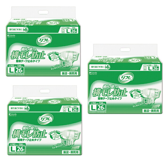 【3個セット】【送料無料】リフレ 簡単テープ止めタイプ 横モレ防止 Lサイズ 26枚入り (3袋パック) 介護用 おむつ 大人用 施設 リブドゥコーポレーション