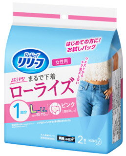 花王 リリーフ パンツタイプ 超うす型まるで下着 1回分ピンク ローライズ 女性用 L〜LLサイズ [2枚入]